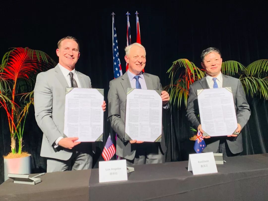 今年是三城经济联盟缔结五周年,奥克兰于5月份接待了来自广州和洛杉矶的代表团,以促进三个城市之间的经济、贸易和投资机会,并加深奥克兰与亚太地区两个经济强市的联系 。